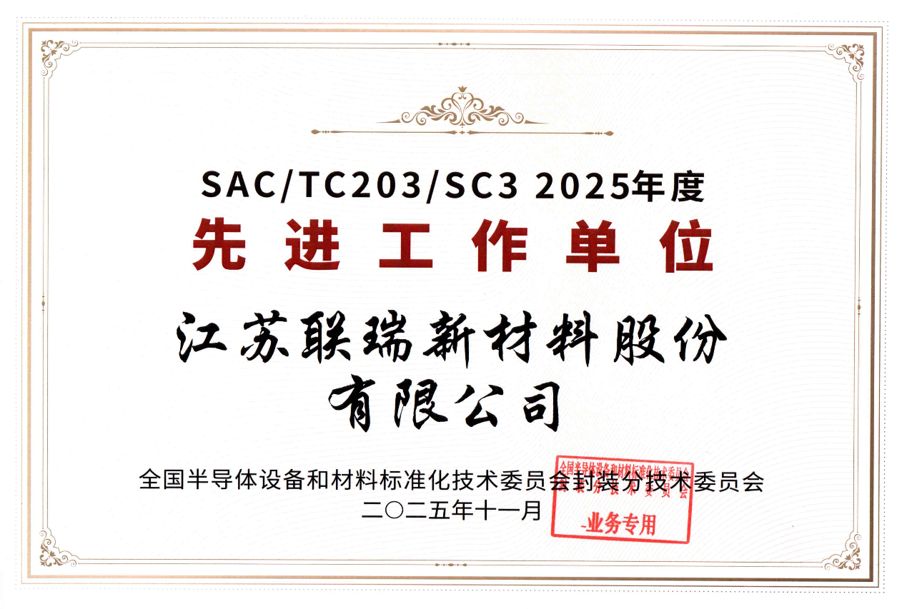 聯(lián)瑞新材榮獲全國半導(dǎo)體設(shè)備和材料標(biāo)準(zhǔn)化技術(shù)委員會(huì)封裝分技術(shù)委員會(huì)“2025年度標(biāo)準(zhǔn)化先進(jìn)工作單位”稱號(hào)